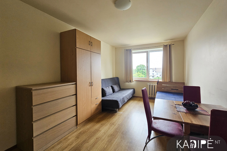 Bute vienoje erdvėje yra virtuvė ir gyvenama zona.